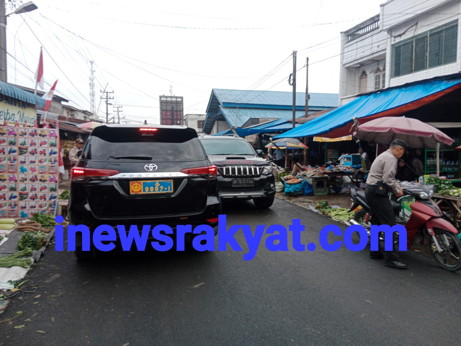 Pengaturan lalu lintas oleh dilaksanakan oleh personel Aiptu.M Rudy S dan Aipda Dedi dilakukan di Pasar Kebun Sayur Kelurahan Binjai Serbangan Kecamatan Air Joman.