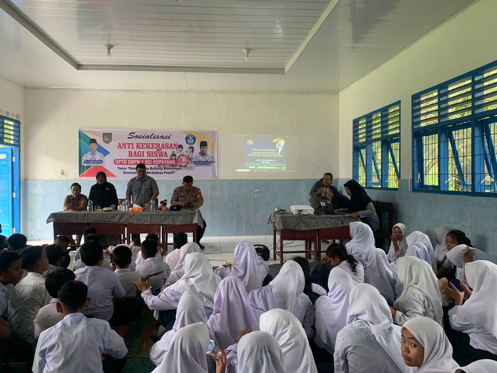 Inewsrakyat.com (Asahan) Bhabinkamtibmas Polsek Sei Kepayang Polres Asahan Aipda Dadang M Ratta melaksanakan sosialisasi anti bullying (Stop bullying) dan kekerasan di UPTD SMP Negeri 1 Sei Kepayang Dusun I Desa Sei Paham Kecamatan Sei Kepayang Kabupaten Asahan Senin 20/11/2023.