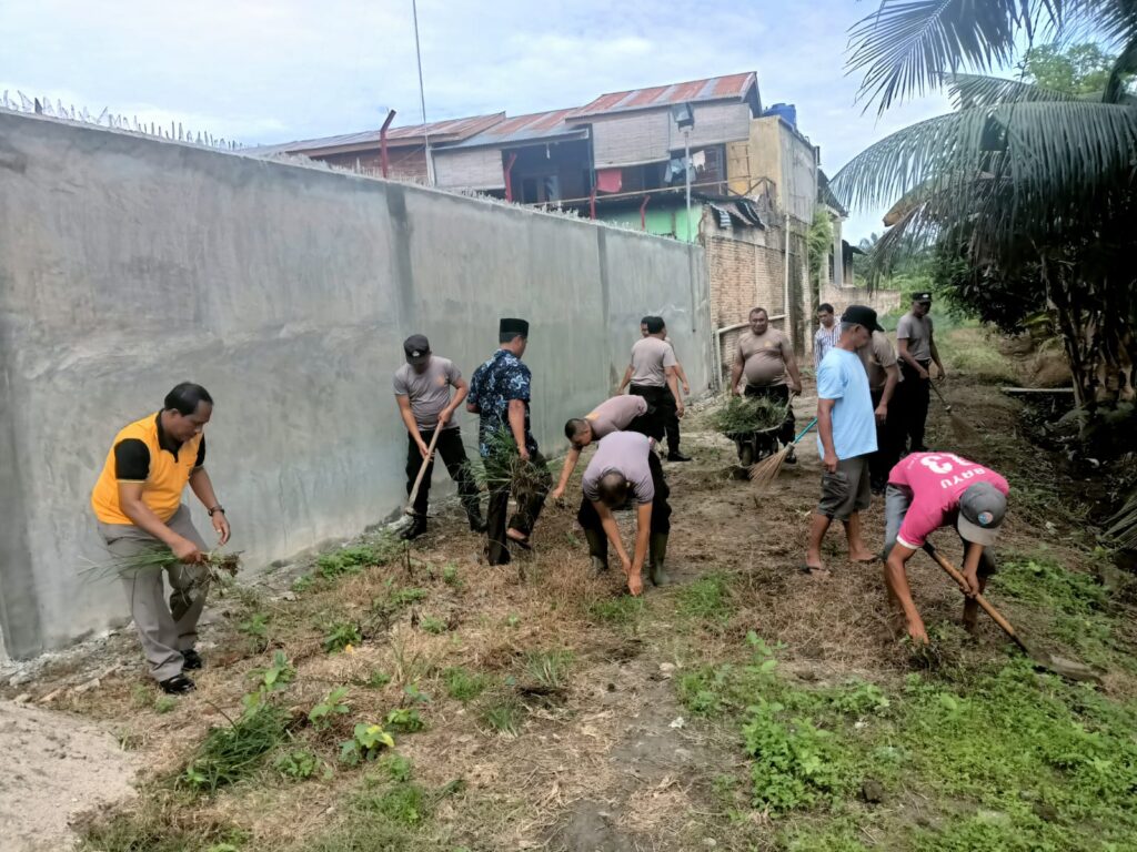 inewsrakyat.com (Asahan) Kapolsek Air Joman bersama personil melaksanakan giat peduli Lingkungan dengan membersihkan sampah secara serentak bersama Polri Kamis 13/07/2023.