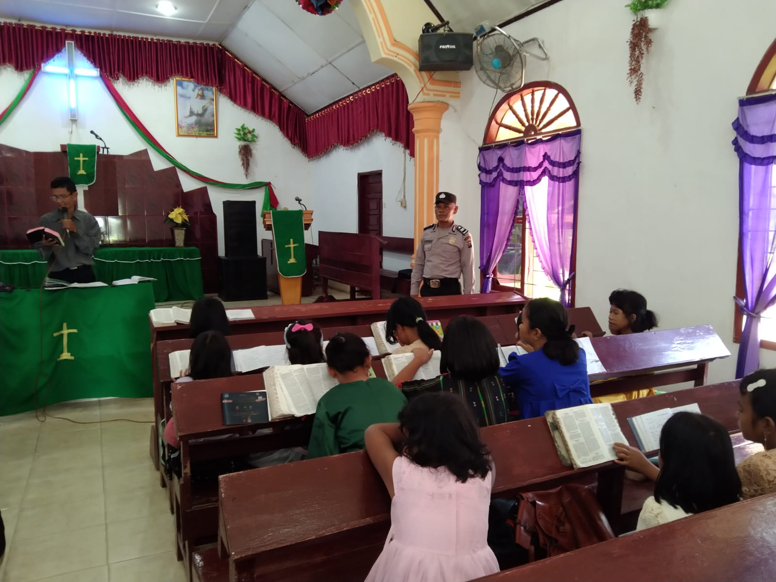 Inewsrakyat.com (Asahan) Personel Polsek Prapat Janji Polres Asahan melaksanakan Minggu Kasih Kamtibmas yang dilaksanakan di Gereja HKBP Pulau Mandi Desa Buntu Pane Kecamatan Buntu Pane Kabupaten Asahan Minggu 19/11/2023.