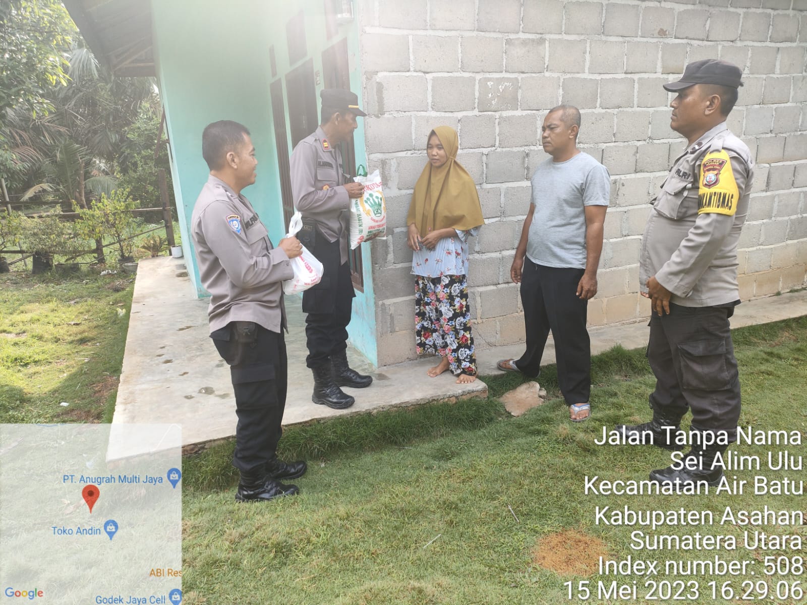 Kapolres Asahan AKBP Rocky H Marpaung, SH, SIK, MH melalui Kapolsek Air Joman AKP T Lawolo mengatakan bahwa upaya menolong dan membantu masyarakat tidak lepas dari peran Bhabinkamtibmas yang merupakan garda terdepan dalam membantu dan peduli terhadap sesama dan kepada masyarakat.