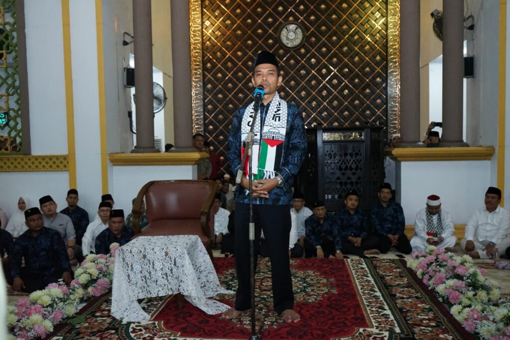 Di ketahui Ustaz Prof. H. Abdul Somad Sebelum memulai tausiahnya disambut dengan lantunan sholawat dari puluhan ribu jama’ah mesjid Agung Ahmad Bakrie Kisaran.