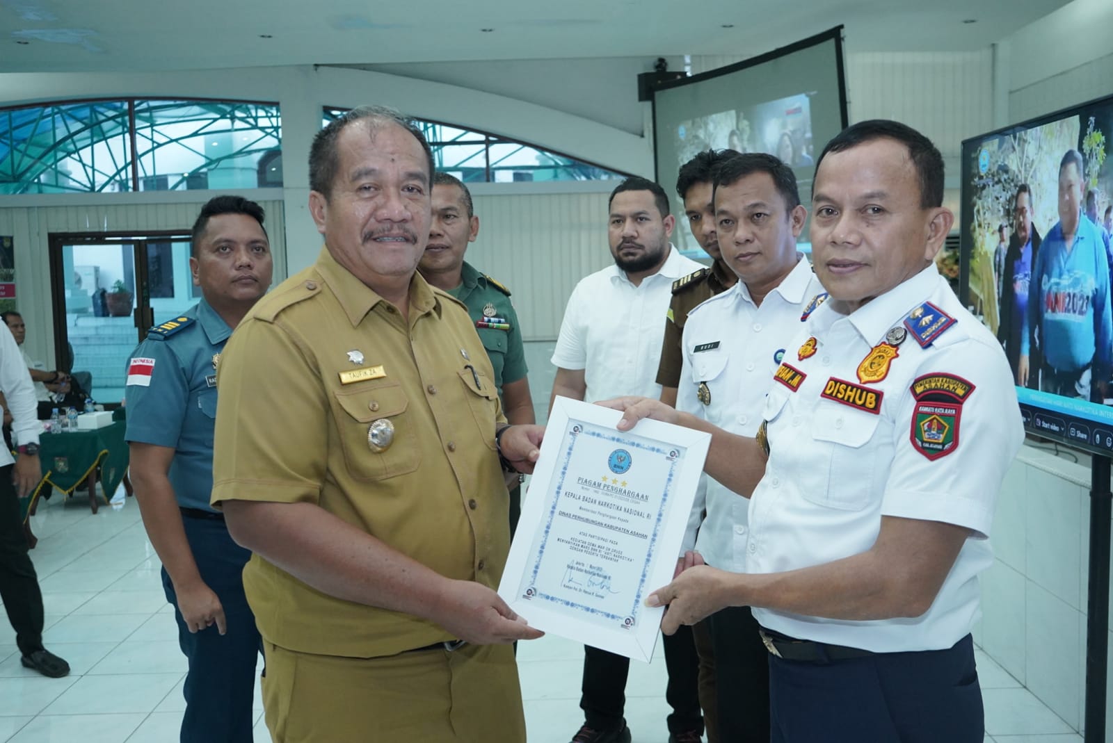 Wakil Bupati bersama Forum Koordinasi Pimpinan Daerah Kabupaten Asahan dan BNN mengikuti kegiatan tersebut secara virtual di Aula Mawar Kantor Bupati Asahan, Senin 26/06/2023. Turut juga hadir Asisten I, Asisten II, OPD, Para Camat dan tamu undangan lainnya.
